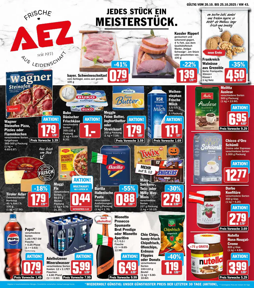 Vom 20. Oktober bis 25. Oktober 2025 (KW 43) erwarten Sie bei AEZ unwiderstehliche Sparpreise. Entdecken Sie eine exquisite Auswahl an frischen Qualitätsprodukten und beliebten Markenartikeln, die Ihren Alltag bereichern und besondere Momente schaffen.